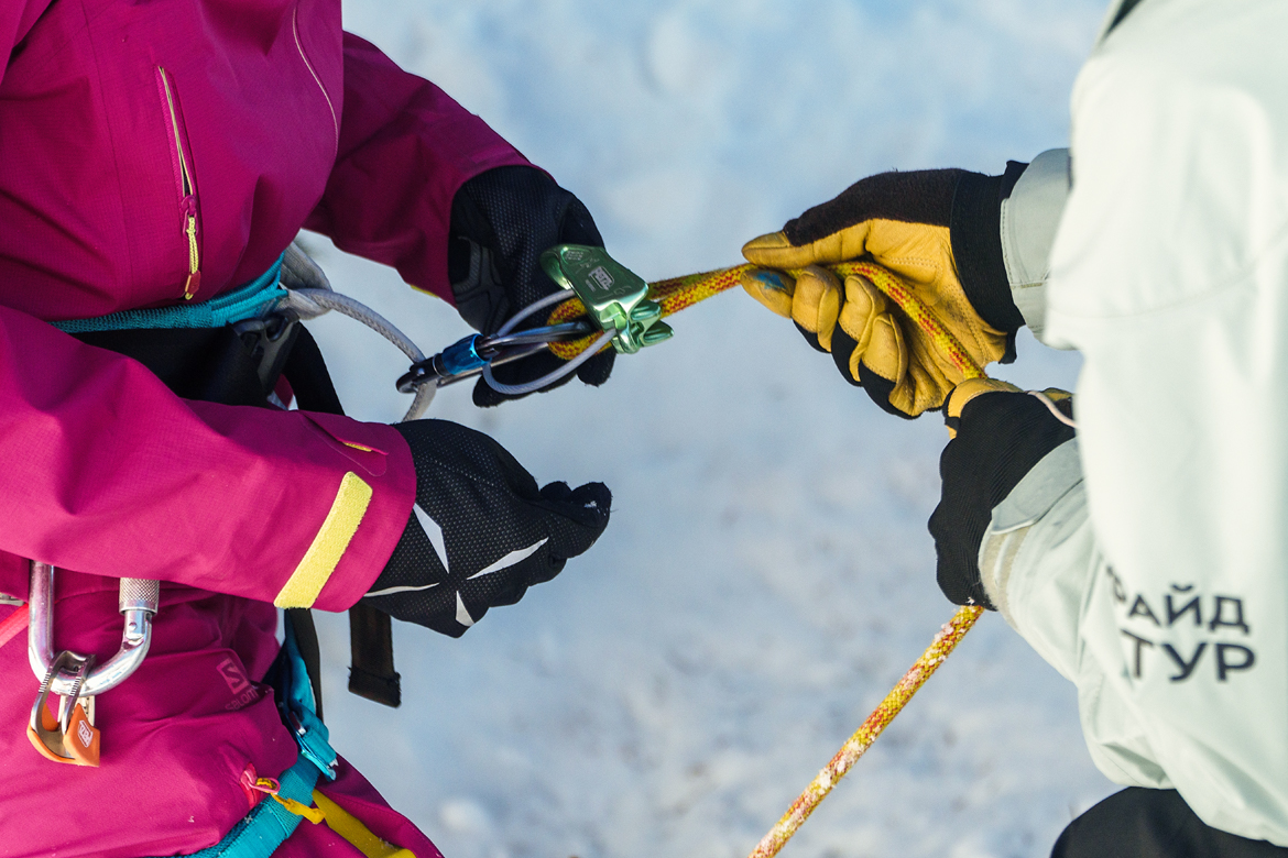 В программе 2-дневного интенсива практика и теория использования альпинистского снаряжения во фрирайде.
