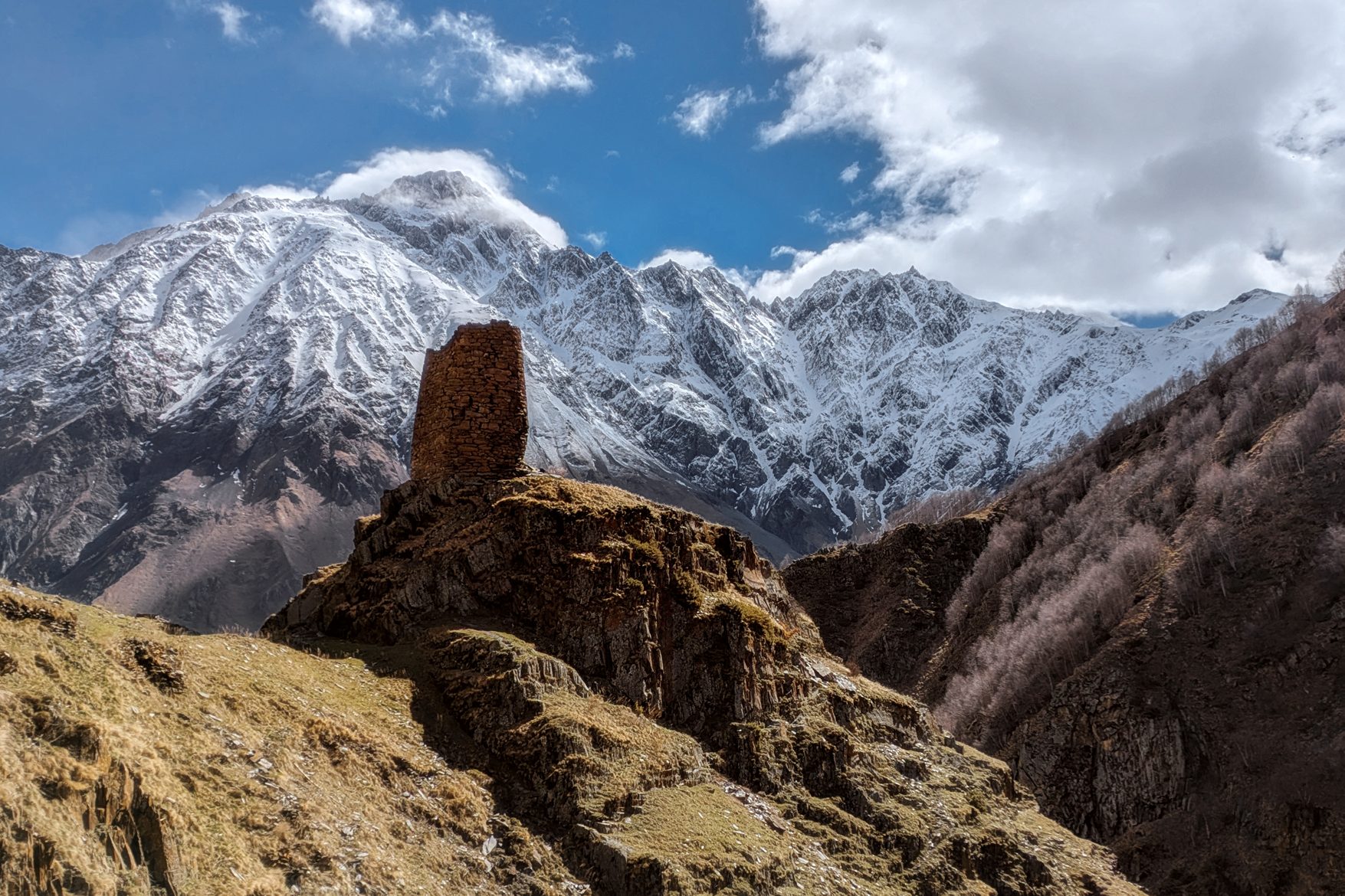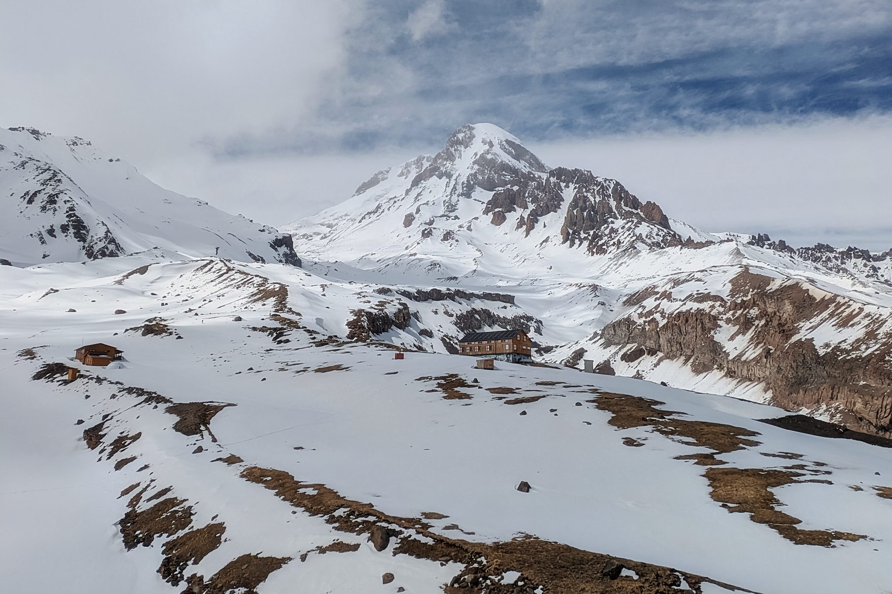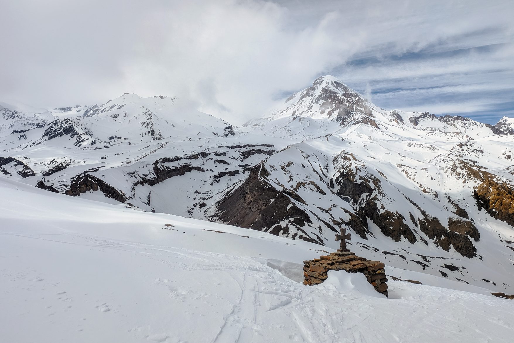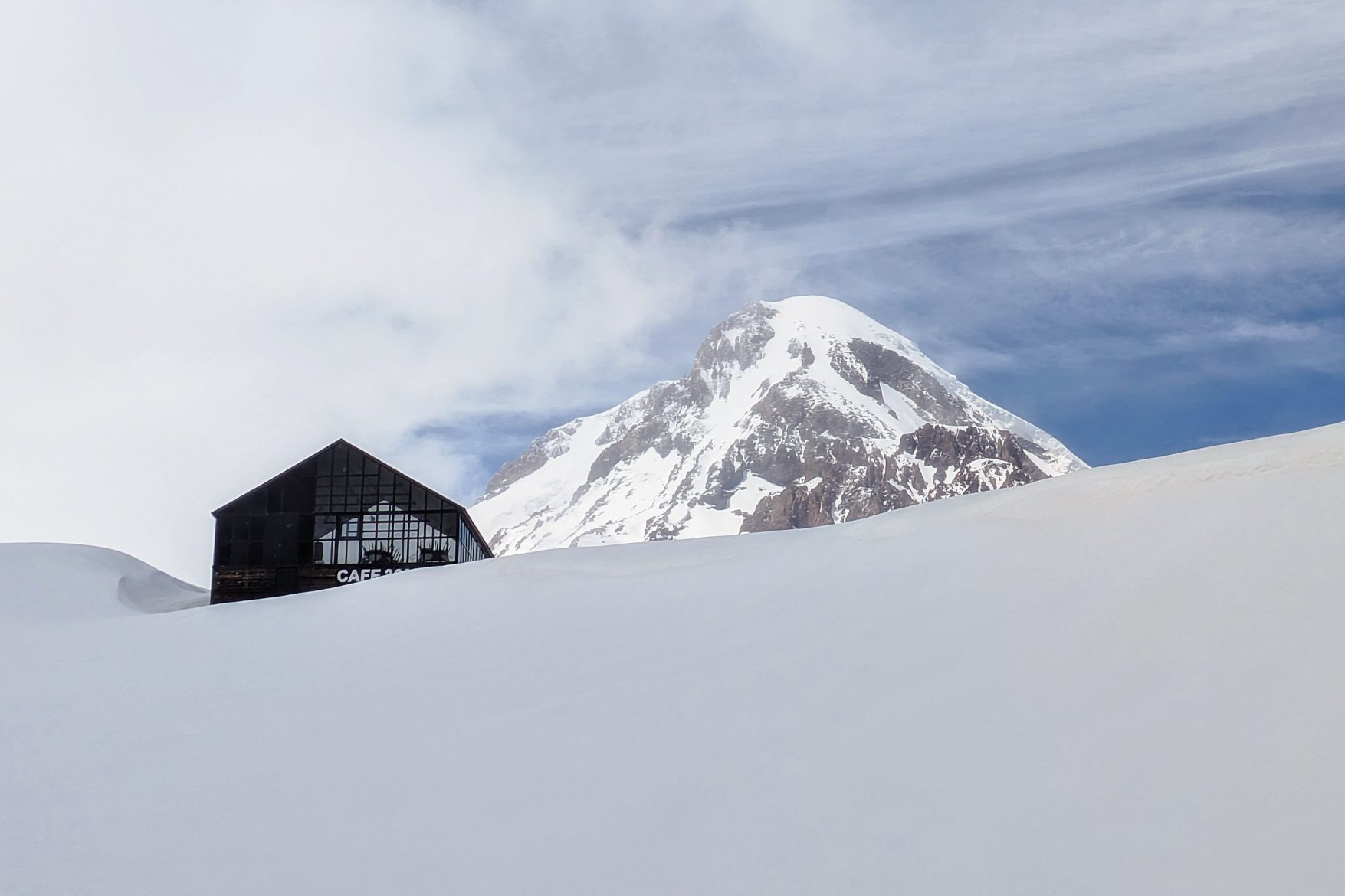 Гора Казбек (5033 м) — потенциально активный стратовулкан, самый восточный пятитысячник Кавказа. Со стороны Грузии на высоте 3000 метров построены две живописные горные хижины, позволяющие с комфортом жить и кататься на южных склонах Казбека.