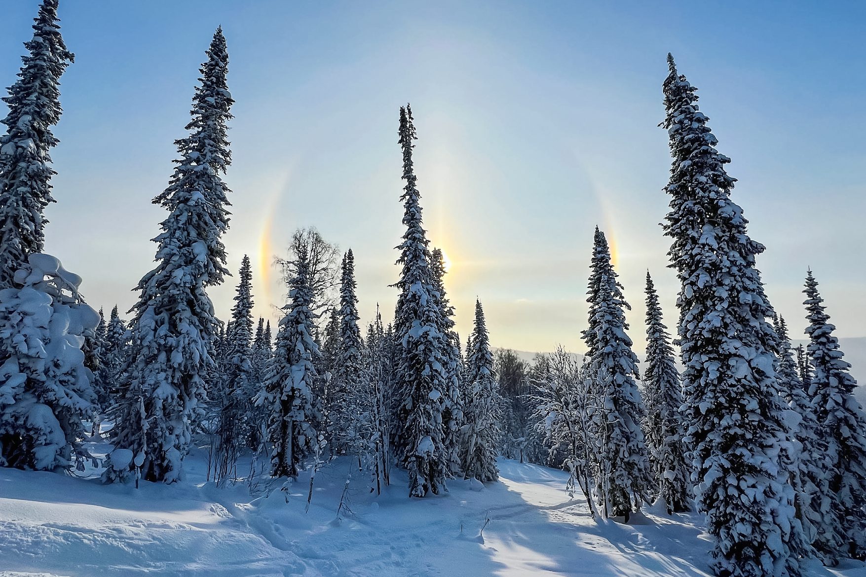 Скитур в первой половине дня, затем обед и сборы. Транспортировка вещей на снегоходе и переправа.
