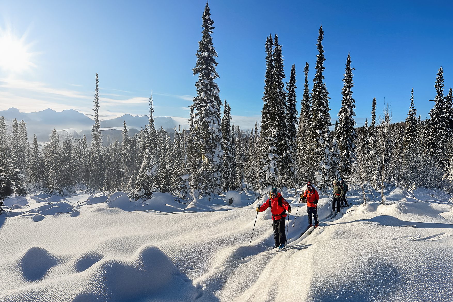 Скитур в горах Кузнецкого Алатау. 2-4 спуска в день со средним суммарным перепадом 1000-1500 метров. Возвращение на базу около 15:00. Отдых, ужин, баня по желанию.