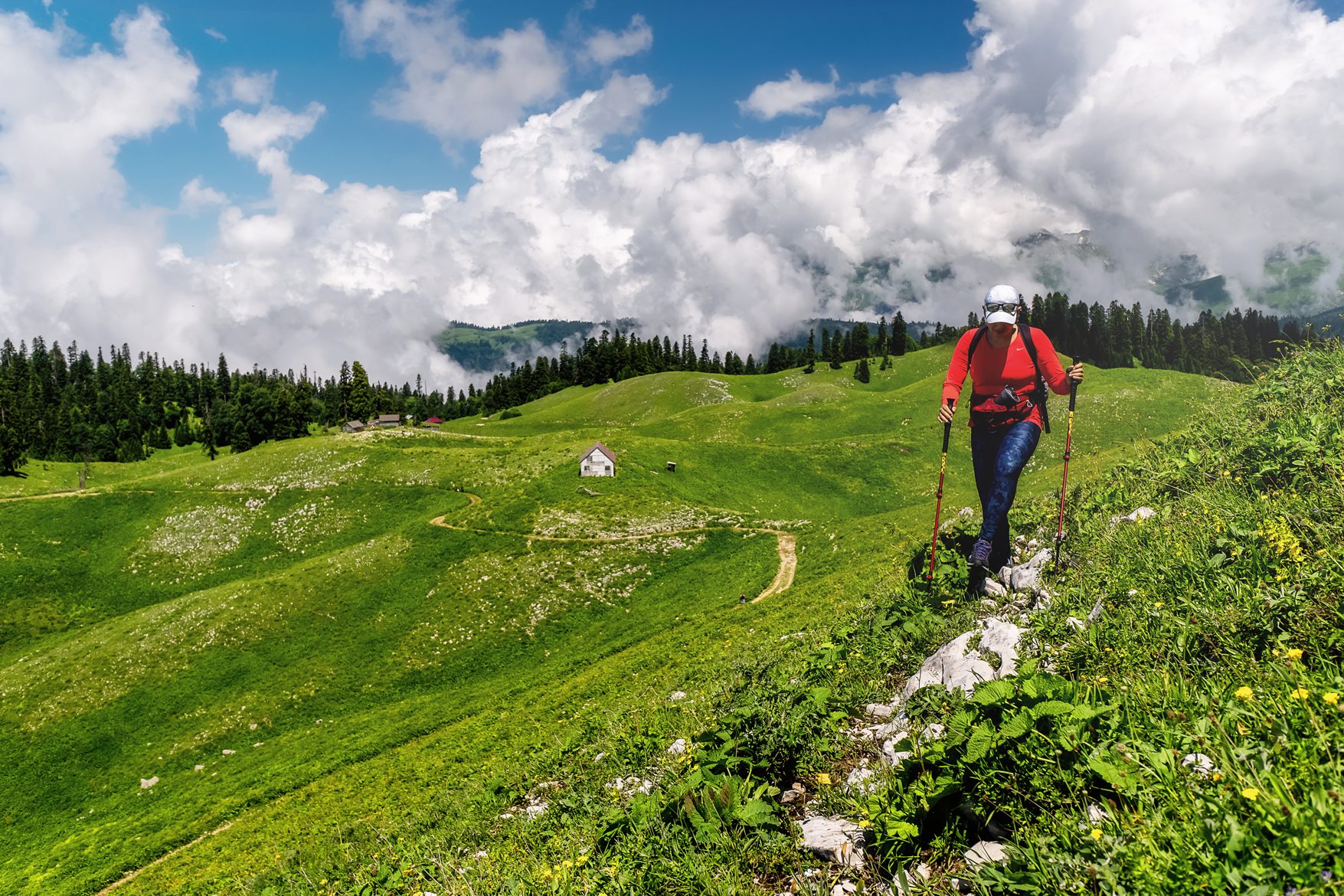 Пешая часть маршрута начинается на высоте 1600м. Через красивый пихтовый лес тропа выводит нас на альпийские луга к пастушьим балаганам и далее на вершину г. Мамдзышха 1866м. Отсюда открываются взору бесконечные просторы Черноморского побережья. Тропа петляет по хребту то вниз, то вверх и приводит нас к финальной точке г. Шабашха 1970м, где мы устроимся на обед с шикарными видами. На обратном пути приятный бонус – можем сделать остановку на пляже и освежиться в море.