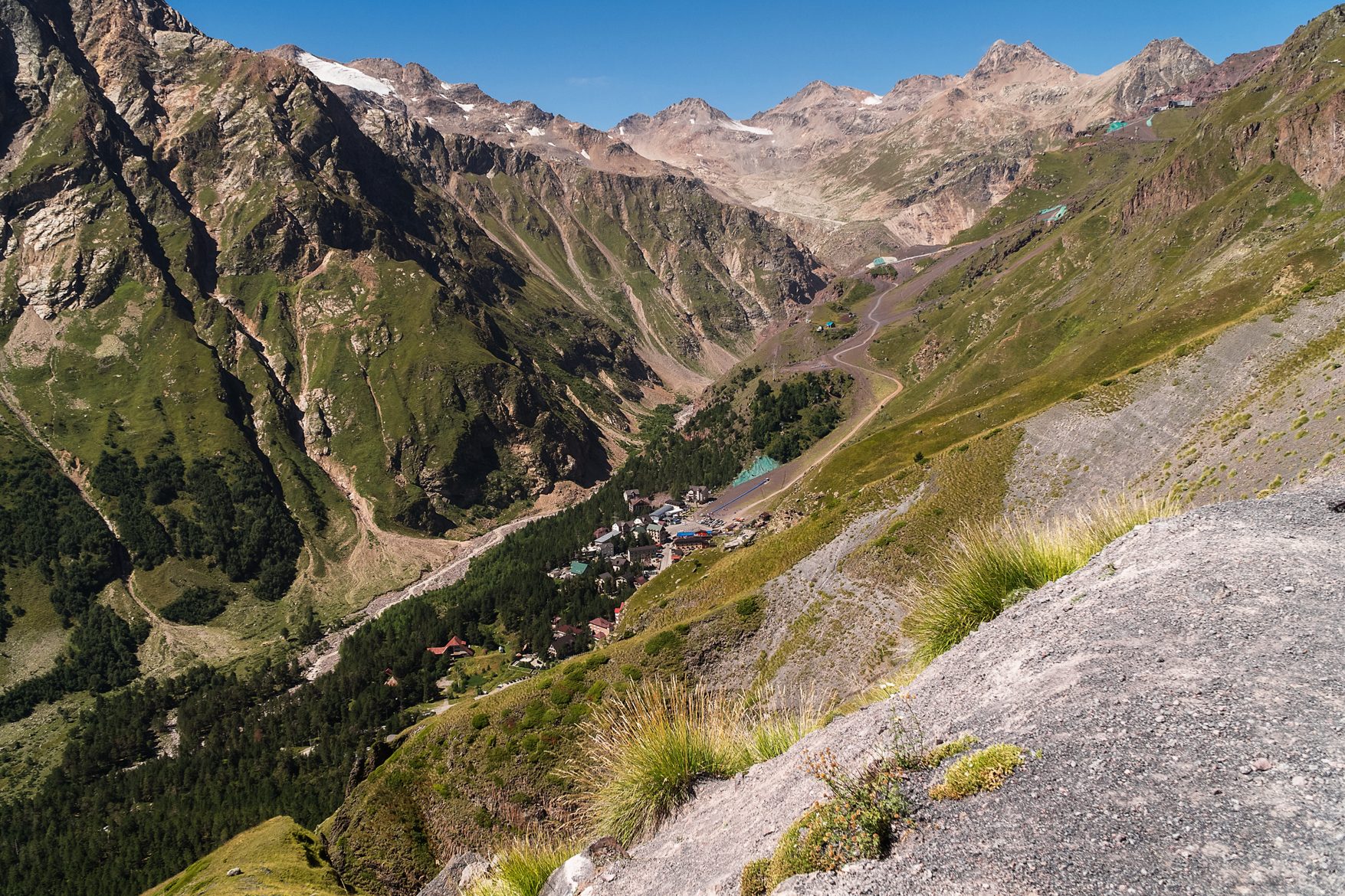 Начало маршрута из поселка Терскол 2100м, протяженность 12 км, набор высоты 1000м, продолжительность около 8 часов. Сложность выше средней.