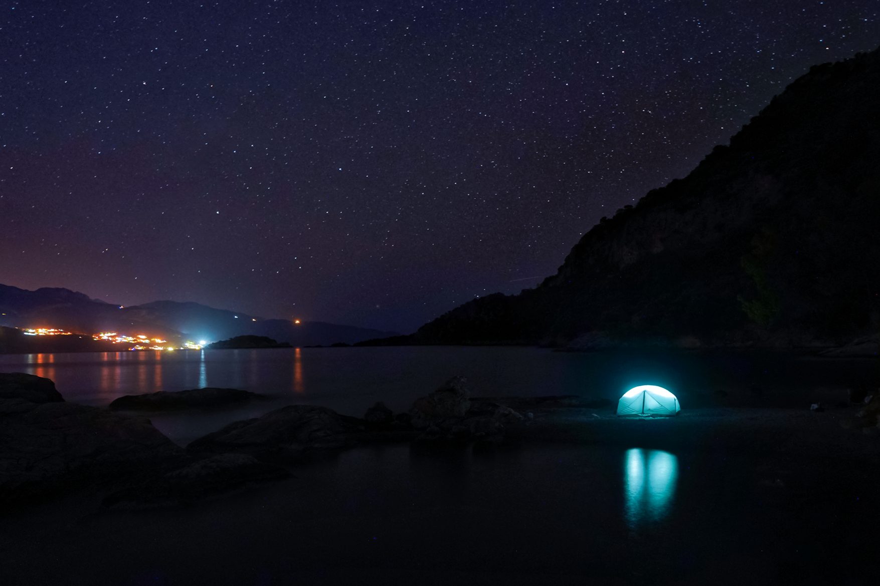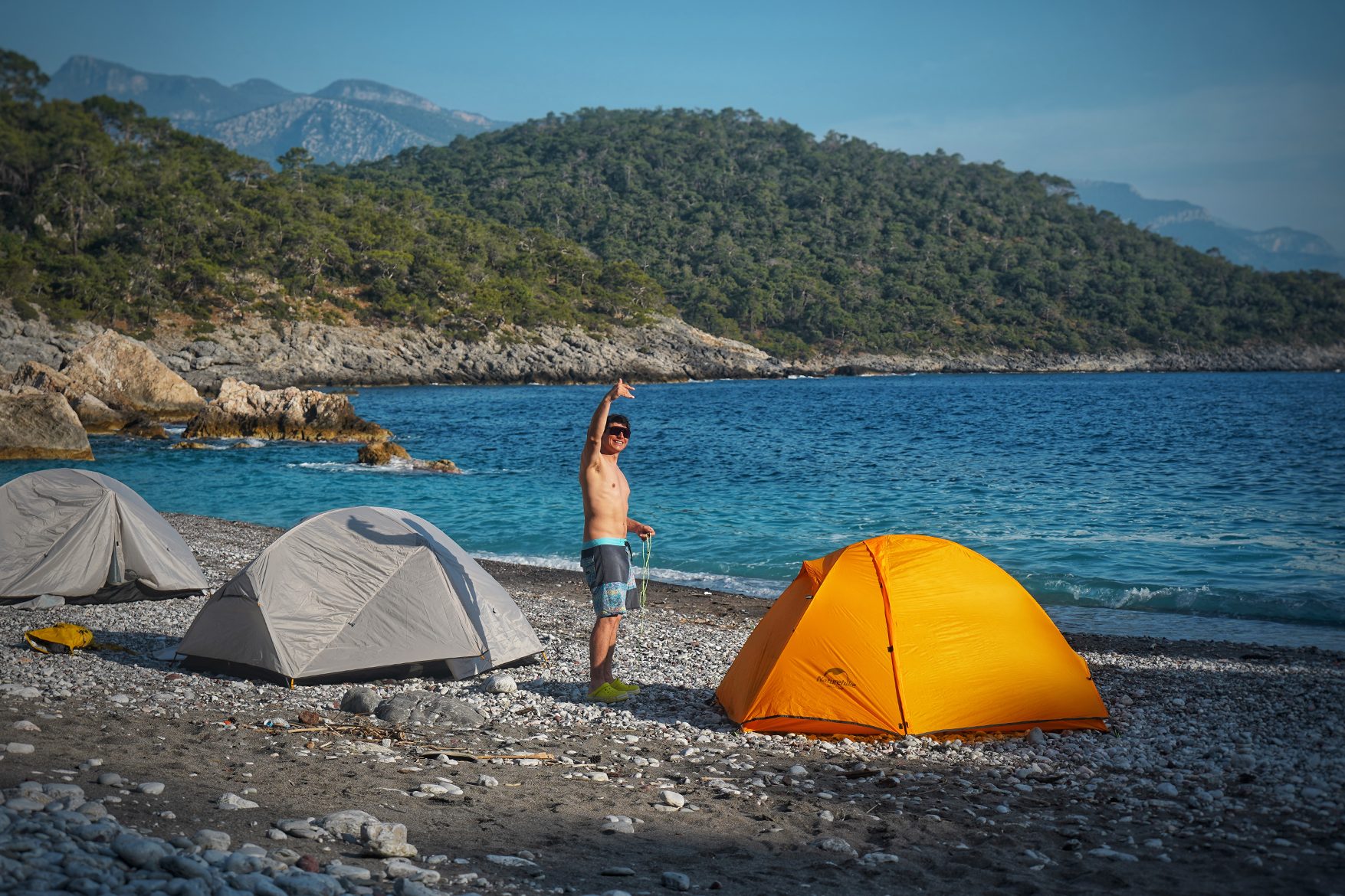 Много купаемся и отдыхаем. Затем установим лагерь и приготовим ужин в походных условиях. Сегодня ночуем в палатках под шум моря.